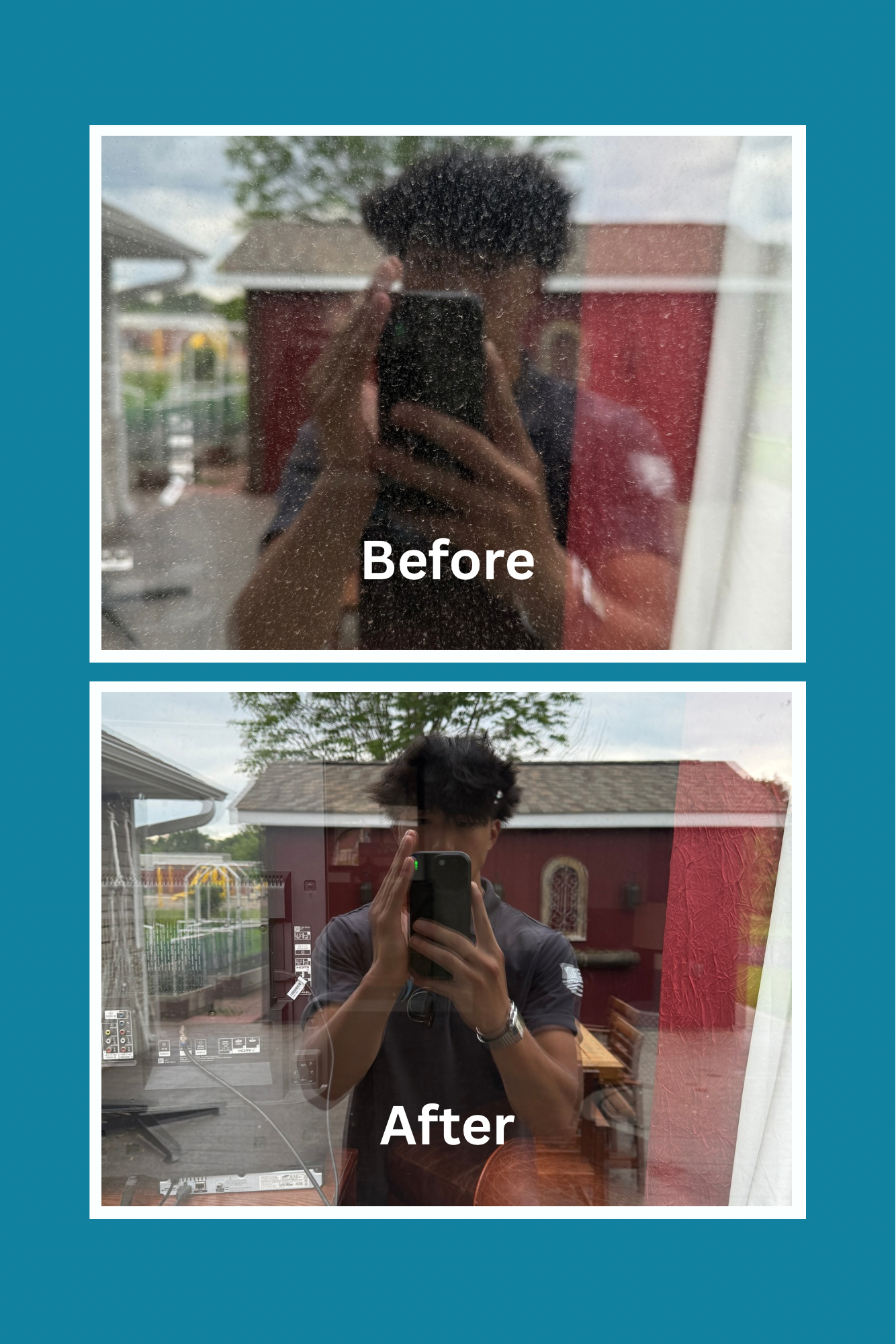 We offer window cleaning using a water-fed pole system with a deionized (DI) water tank. This method uses purified water to clean windows without streaks or spots, reaching high and hard-to-access areas safely and efficiently for a crystal-clear finish.